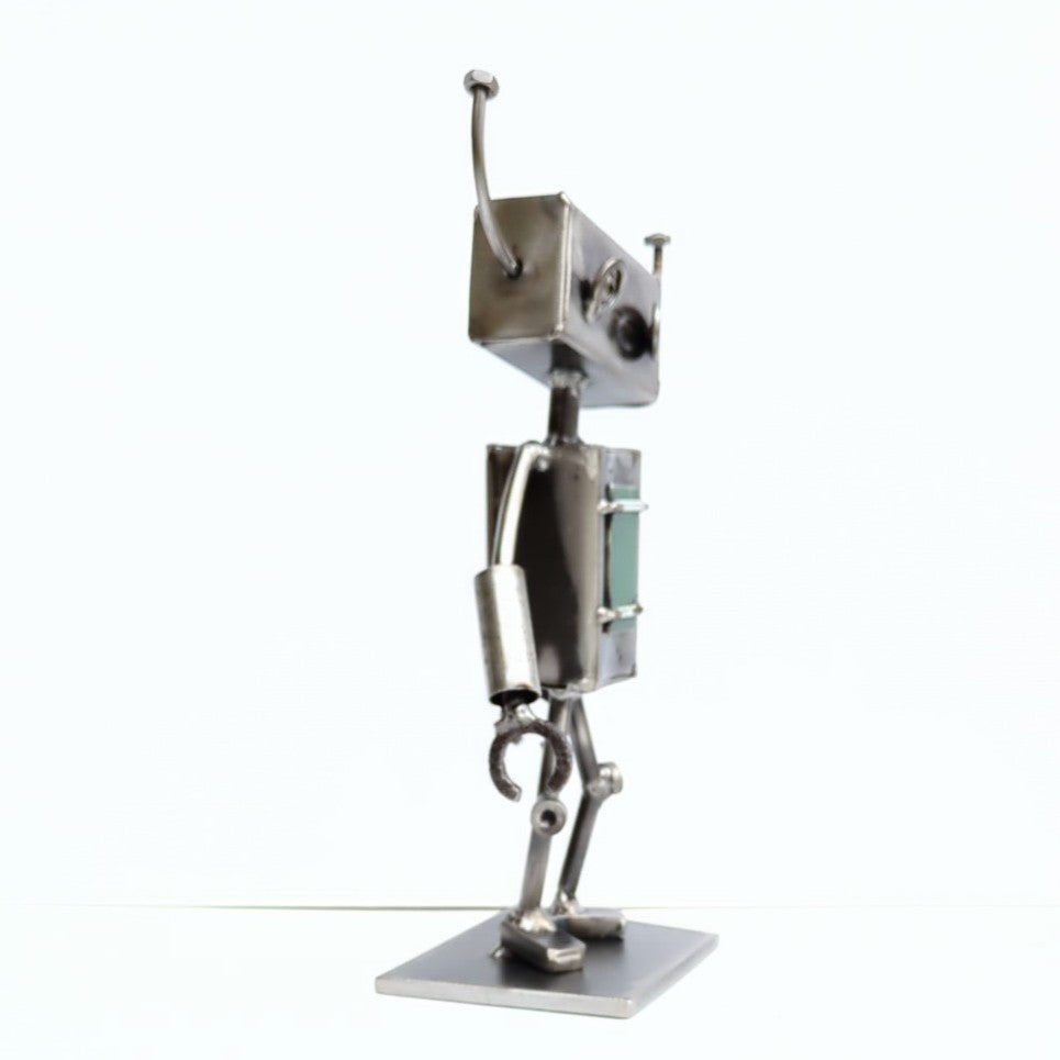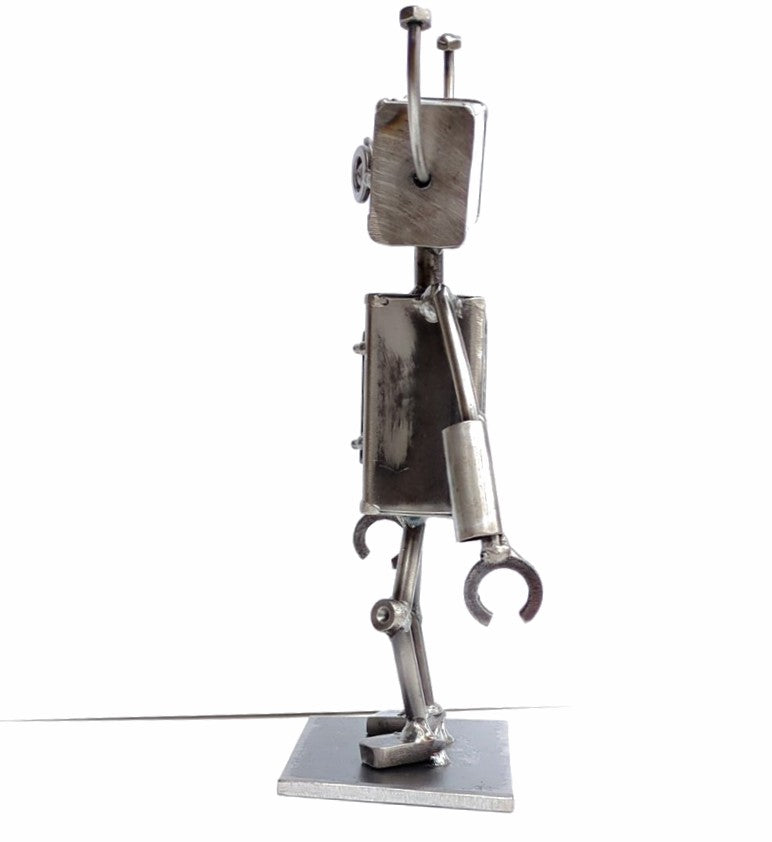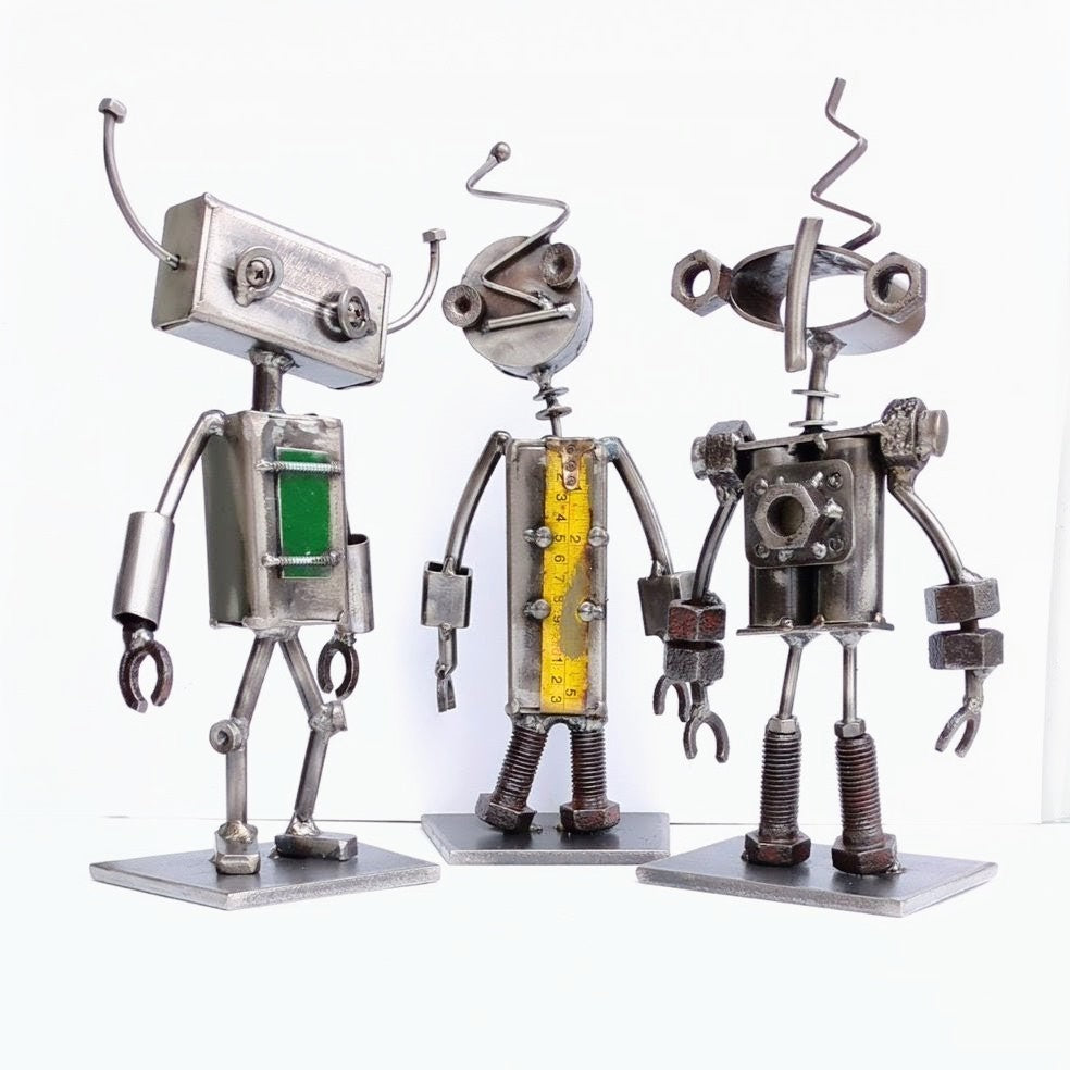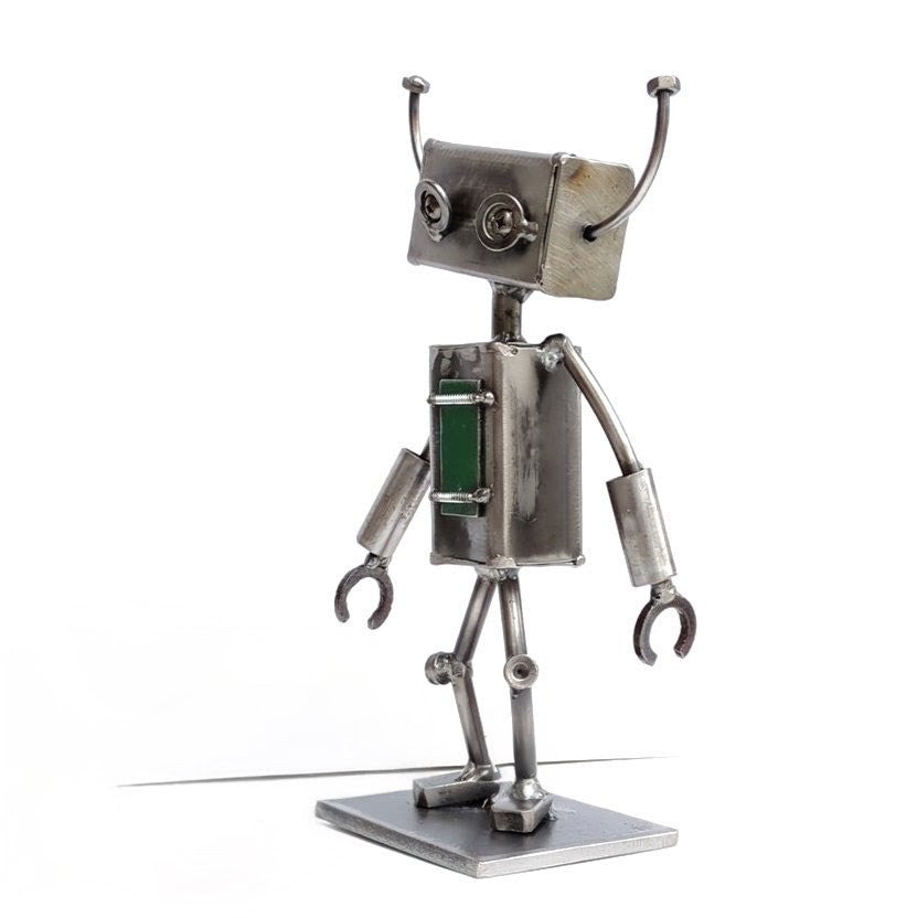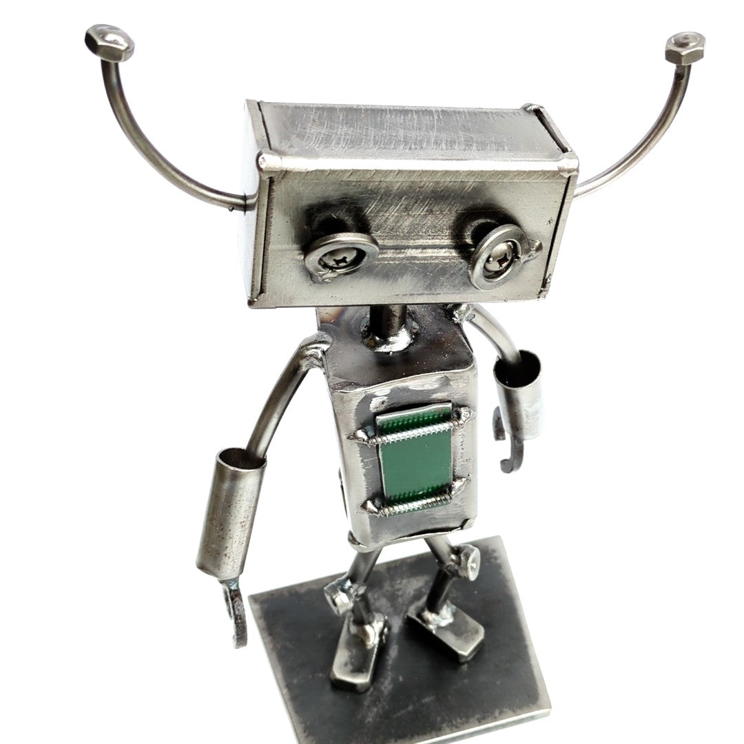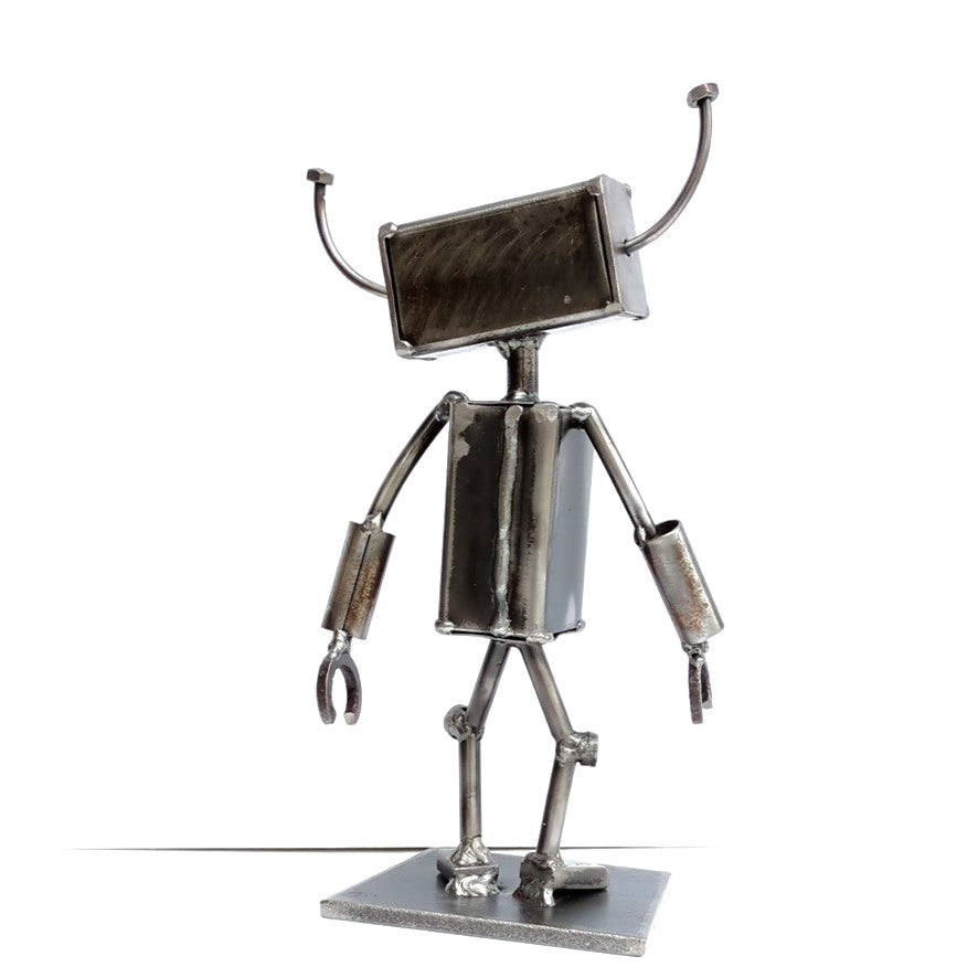 Meet Robot III, a one-of-a-kind sculpture crafted by Styll's very own Heather. This whimsical piece combines recycled and new metals, carefully arranged to create a unique character full of personality. Perfect for adding creativity to any space.