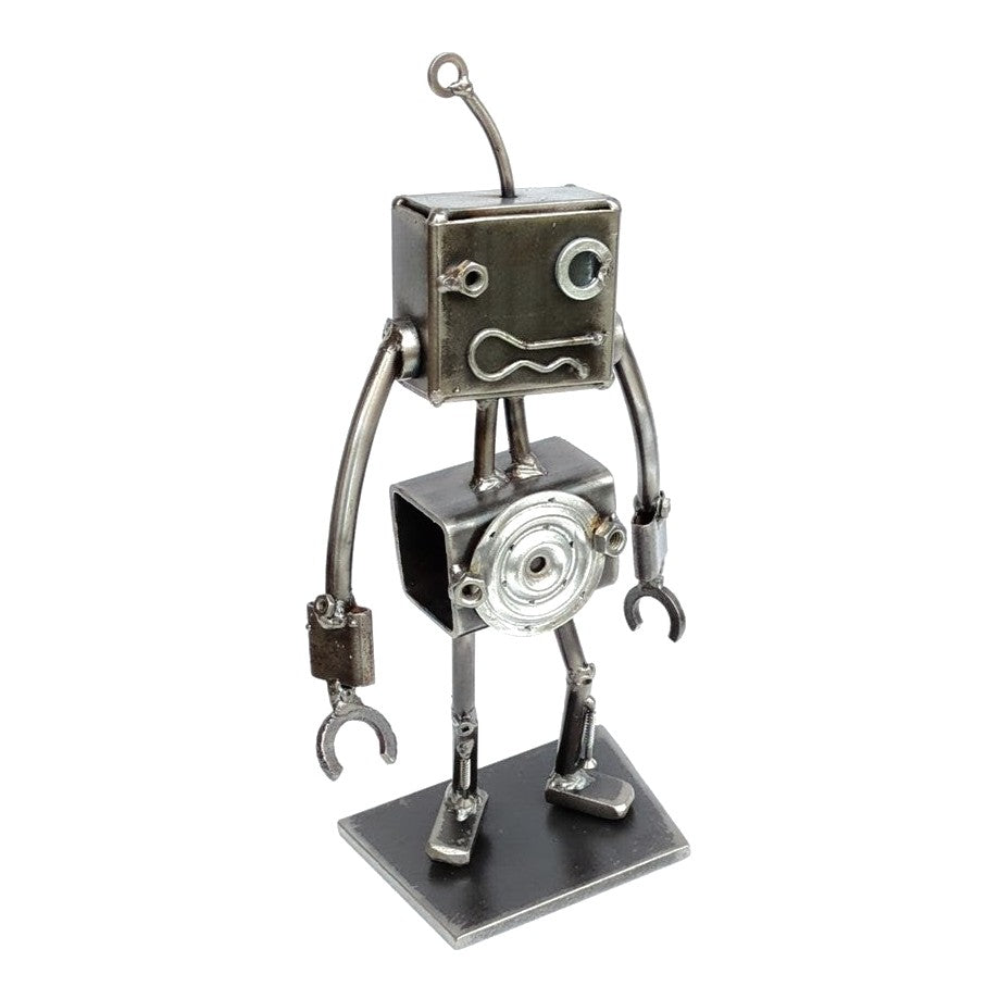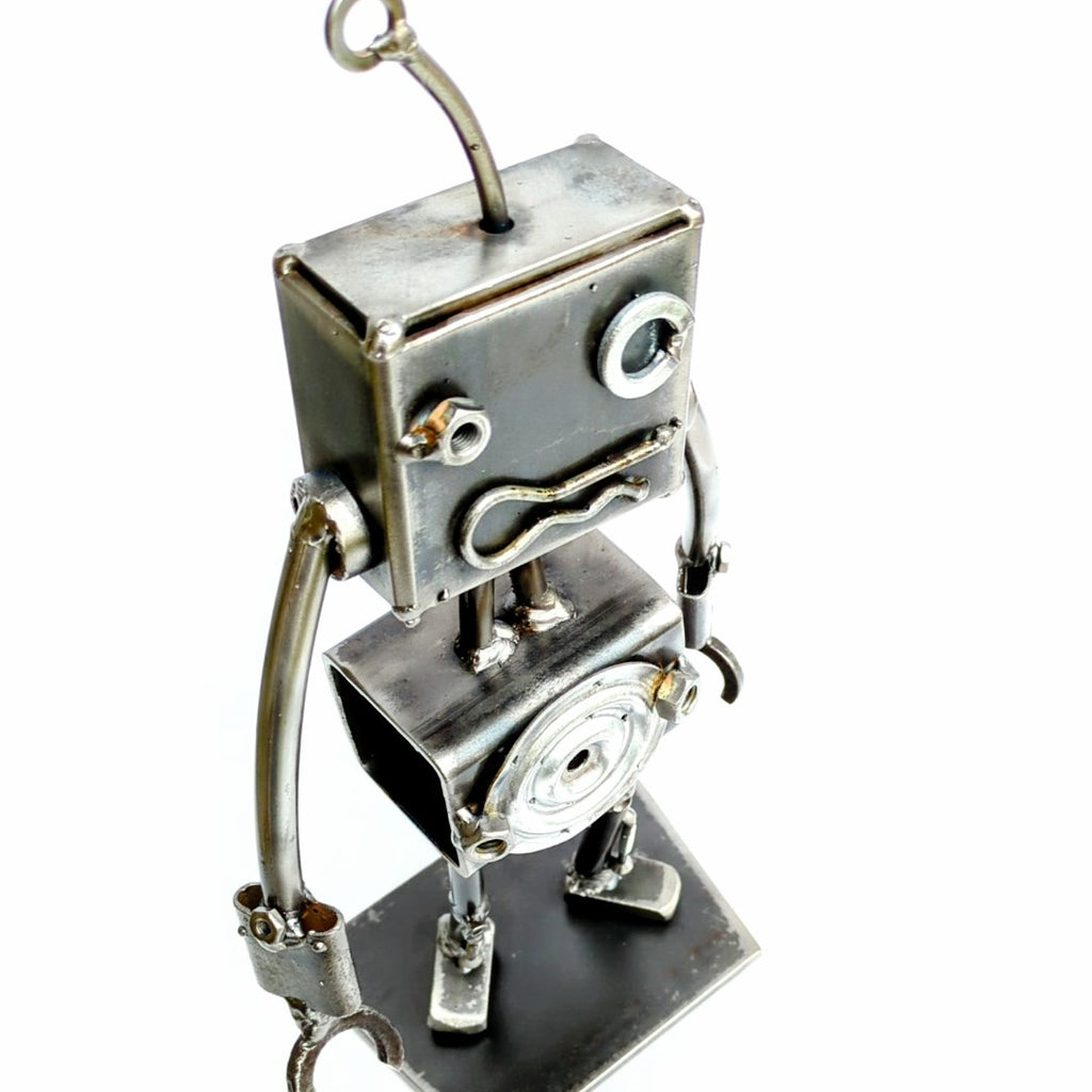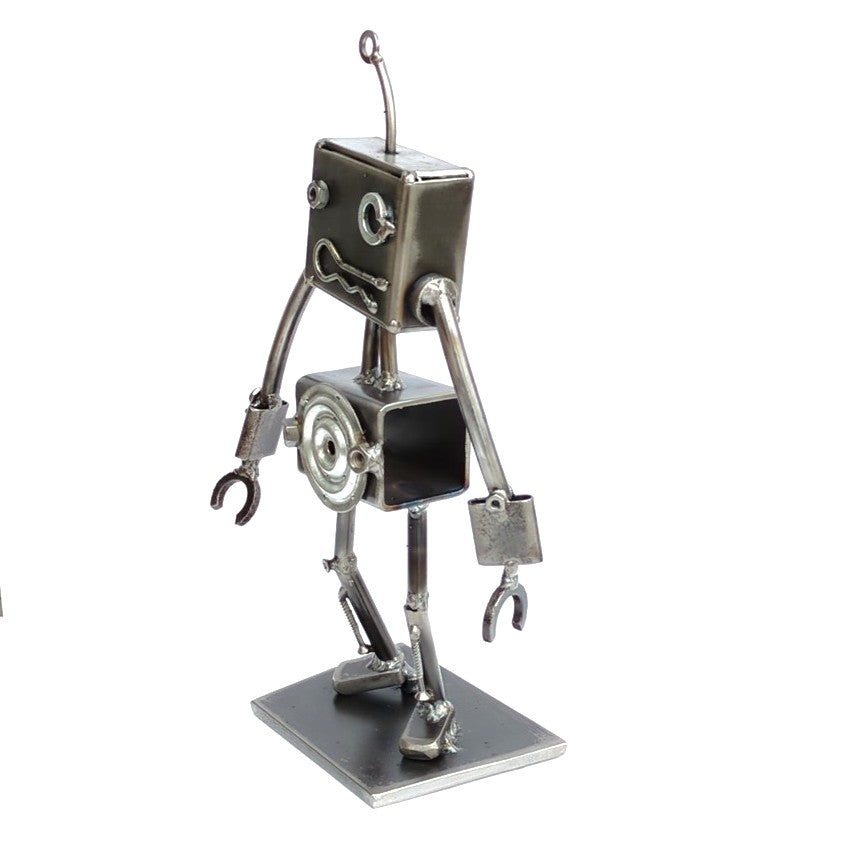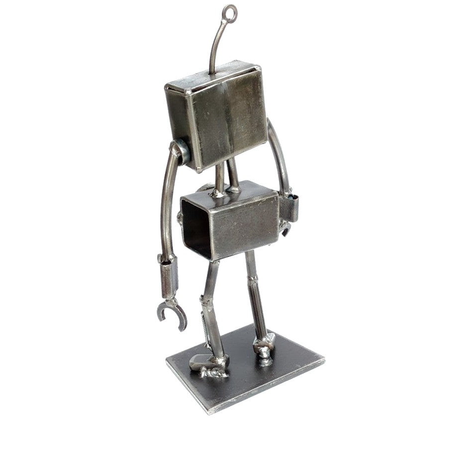 Meet Robot V, a one-of-a-kind sculpture crafted by Styll's very own Heather. This whimsical piece combines recycled and new metals, carefully arranged to create a unique character full of personality. Perfect for adding creativity to any space.