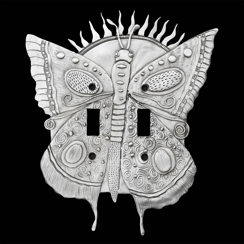 The whimsical figures and symbols decorating her pewter collections and etched glassware illustrate her wonderful world of stars, whirligigs and sky-rockets. Along with a menagerie of odd-shaped animals and hyperactive men, women and children blessed with far-out faces and figures, Leandra creates a unique world best described as "fantasy in motion."