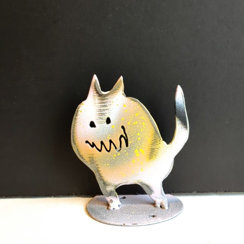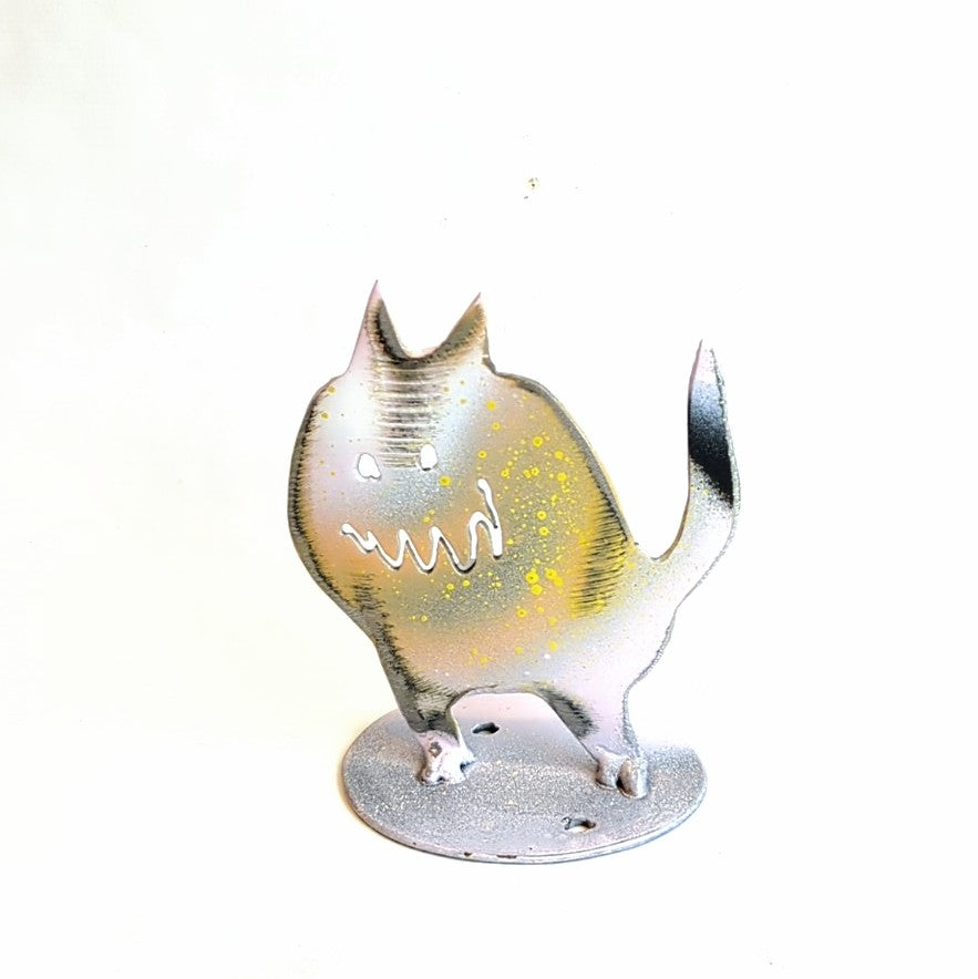 Clearly the artist here has a sense of humour....his love of fun and loose style drawing comes out in this playful collection of creatures.  JP hand cuts his designs with a plasma cutter in recycled steel, often with the original paint still on it. The result is rustic, creative and no two pieces are ever alike.